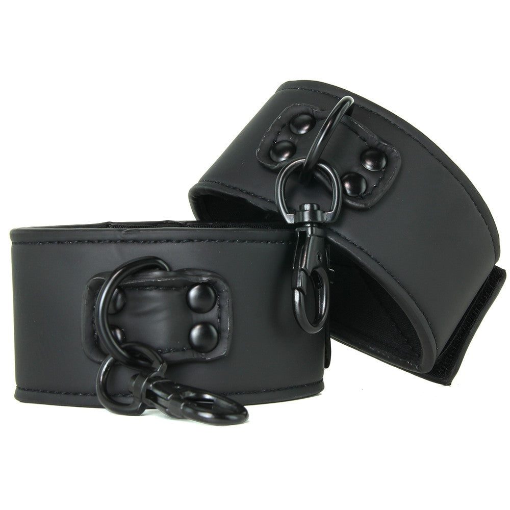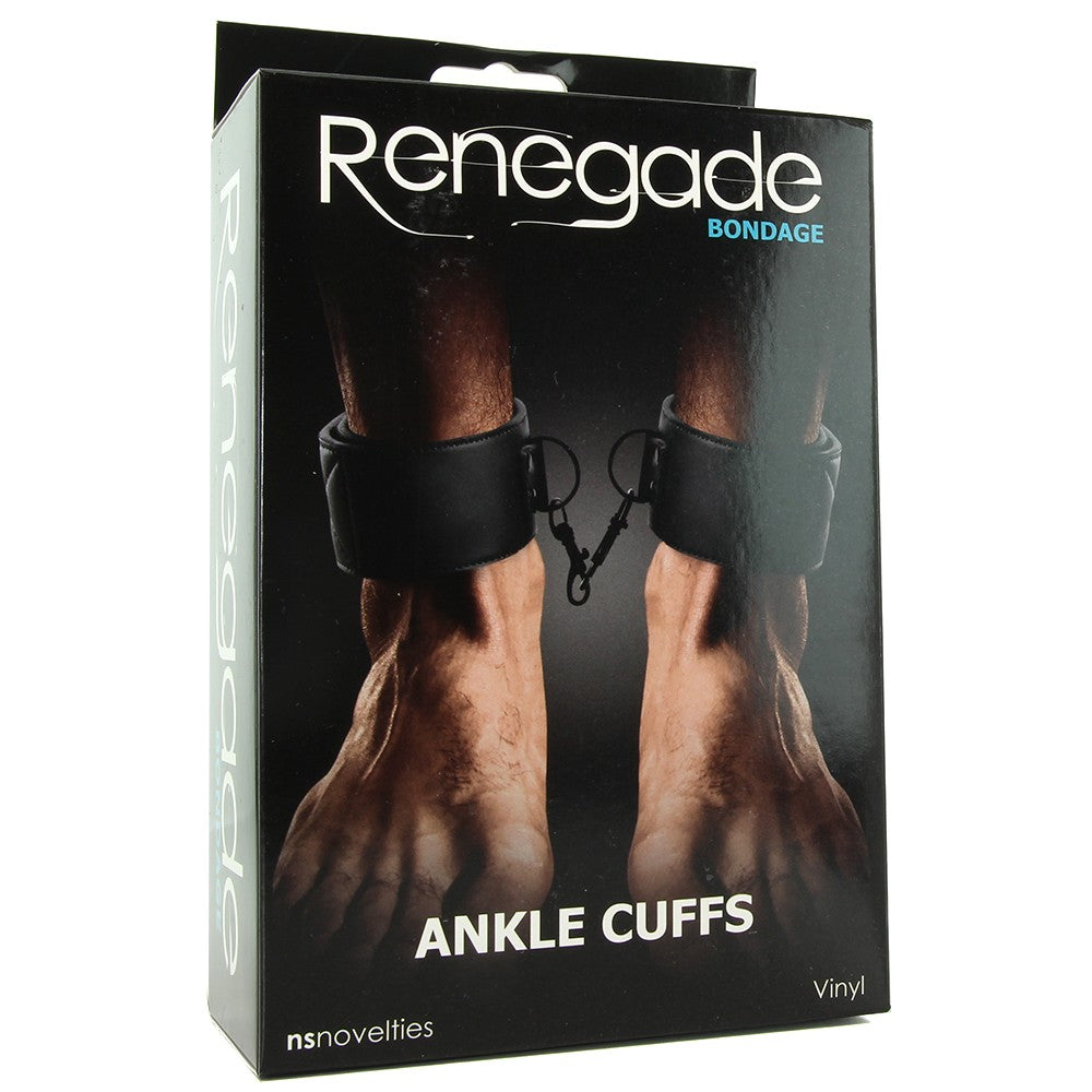 A sturdy neoprene lined set of vinyl cuffs tailored to fit playful bondage scenarios of all types, the Renegade line's classic Ankle Cuffs combine supple styling with sturdy hardware and user-friendly velcro.