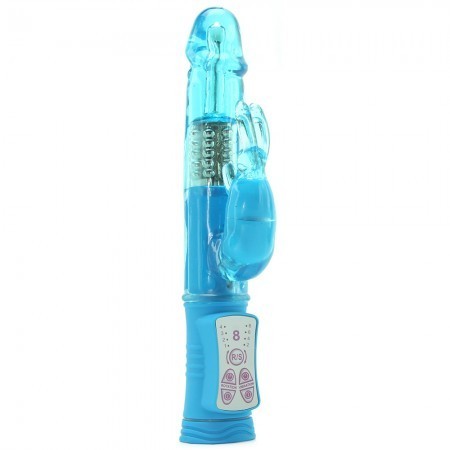 A powerfully pleasurable playtime classic from the always user-friendly Shane's World collection, the Jack Rabbit offers up all the much-loved features of the groundbreaking bunny vibe in a sleek size suited to all experience levels. Along with a sexily lifelike, bead-packed shaft spinning at four possible speeds, the Jack positions a full-coverage tickle-eared rabbit stimulator at clitoris level. Flexing gently for ideal positioning, that namesake bunny places eight rhythms of steady and pulsating vibration precisely agasint the nerve-ending rich clitoris and sensitive surrounding areas. A simple interface mans the rotation and vibration functions independently, so toe-curling customization is absolutely in the cards.In smooth TPE elastomer and sturdy ABS plastic, the Jack Rabbit is extremely easy to clean and maintain- rinse thoroughly under warm soapy water or grab a favorite toy care fluid/foam. Requires 4 AAA batteries (sold separately). Waterproof.